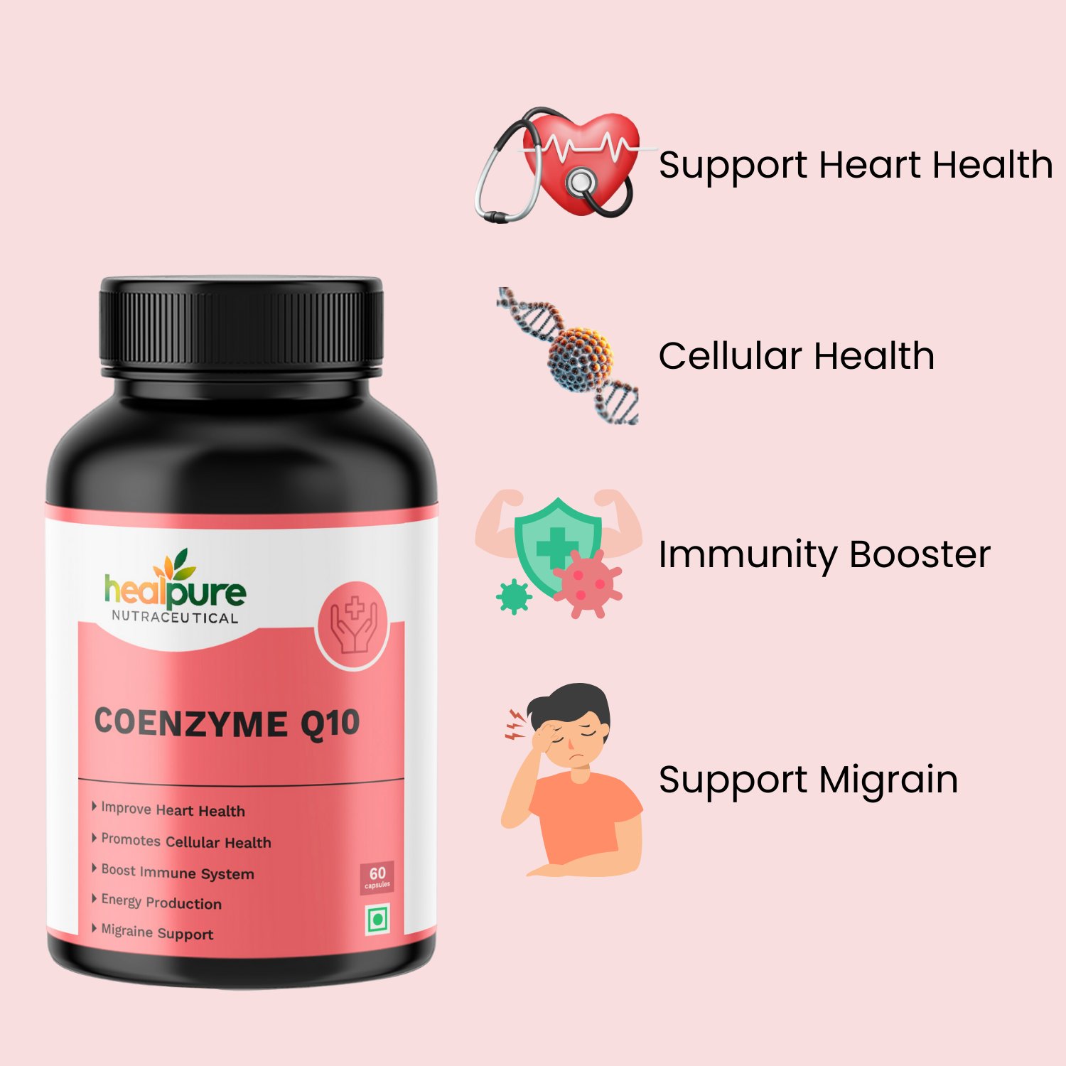 CoQ10 is a powerful antioxidant that plays a key role in energy production at the cellular level.